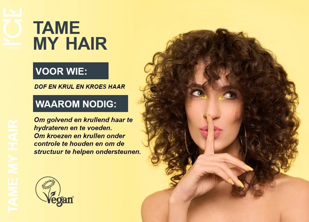 Met ICE Tame My Hair Mask geef je het haar de ultieme verzorging die het verdient. Transformeer dof, krul en kroeshaar in stralend en gezond haar en geniet van zijdezachte lokken die gehydrateerd en gecontroleerd zijn.